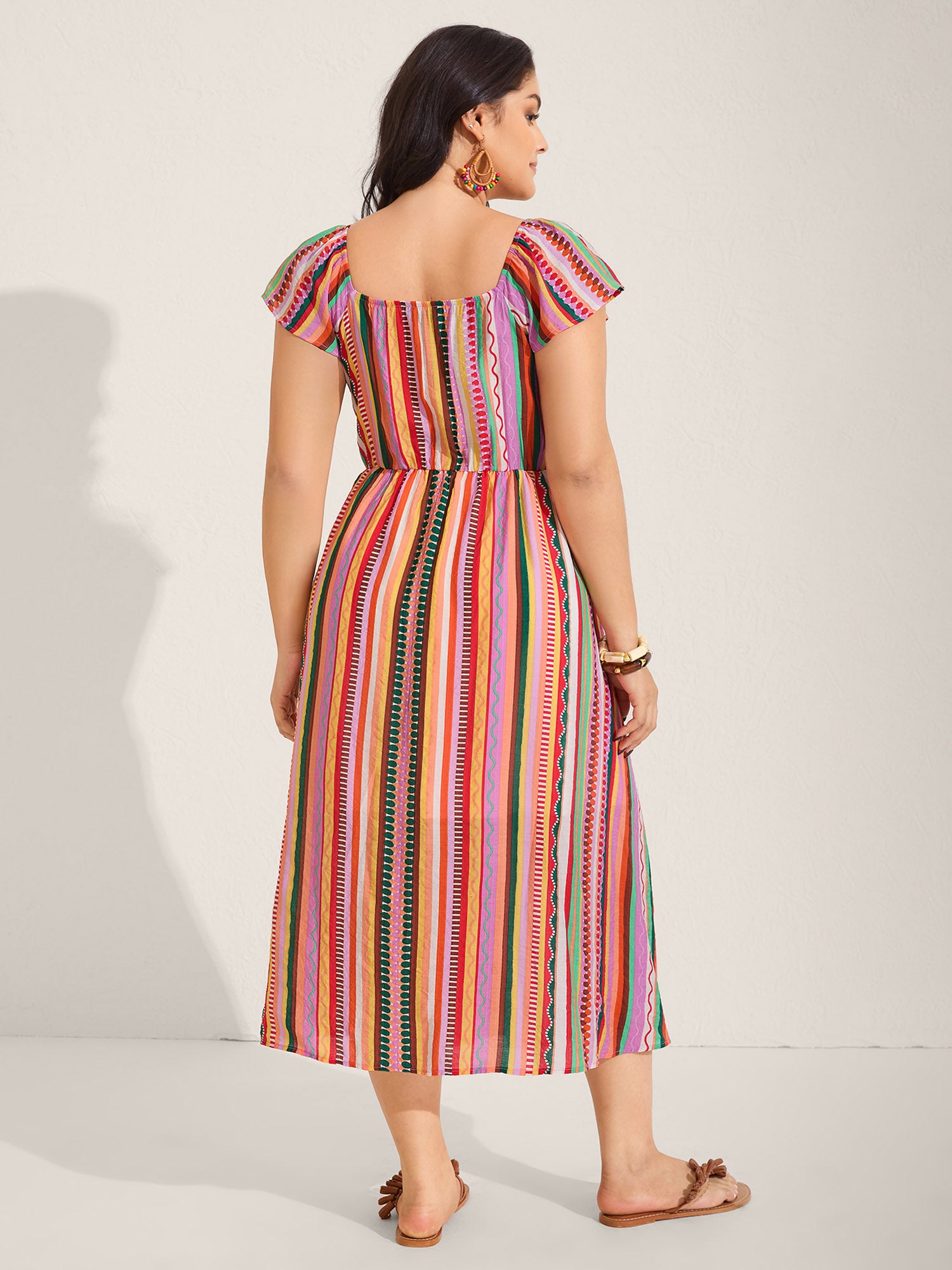 Colorful Stripe Flutter Sleeve Pockets Midi Dress