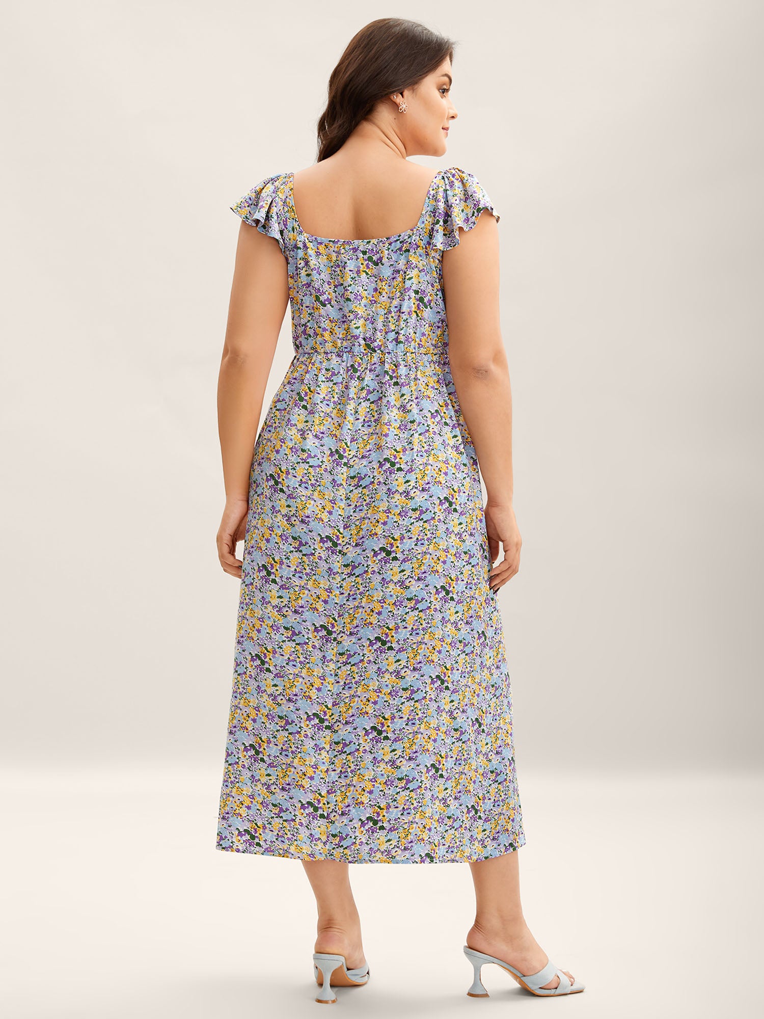 Ditsy Floral Print Neck Tie Midi Dress