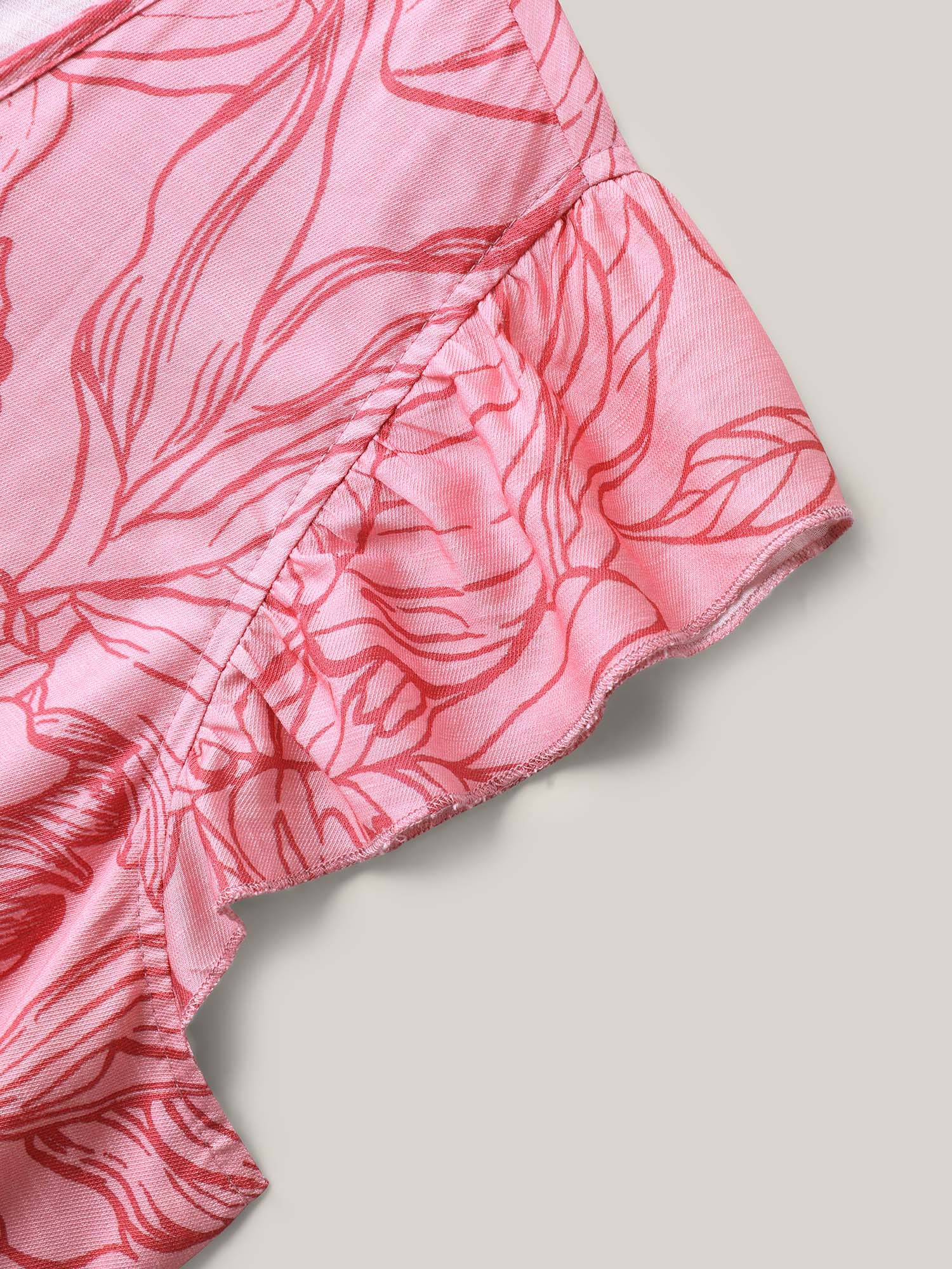 Floral Lines Cinched-Waist Pockets Midi Dress