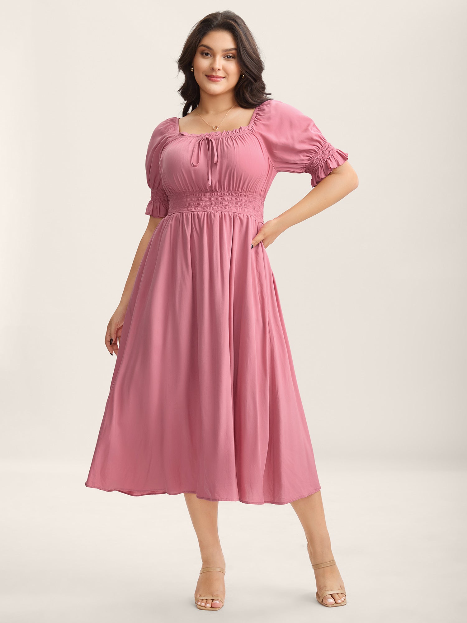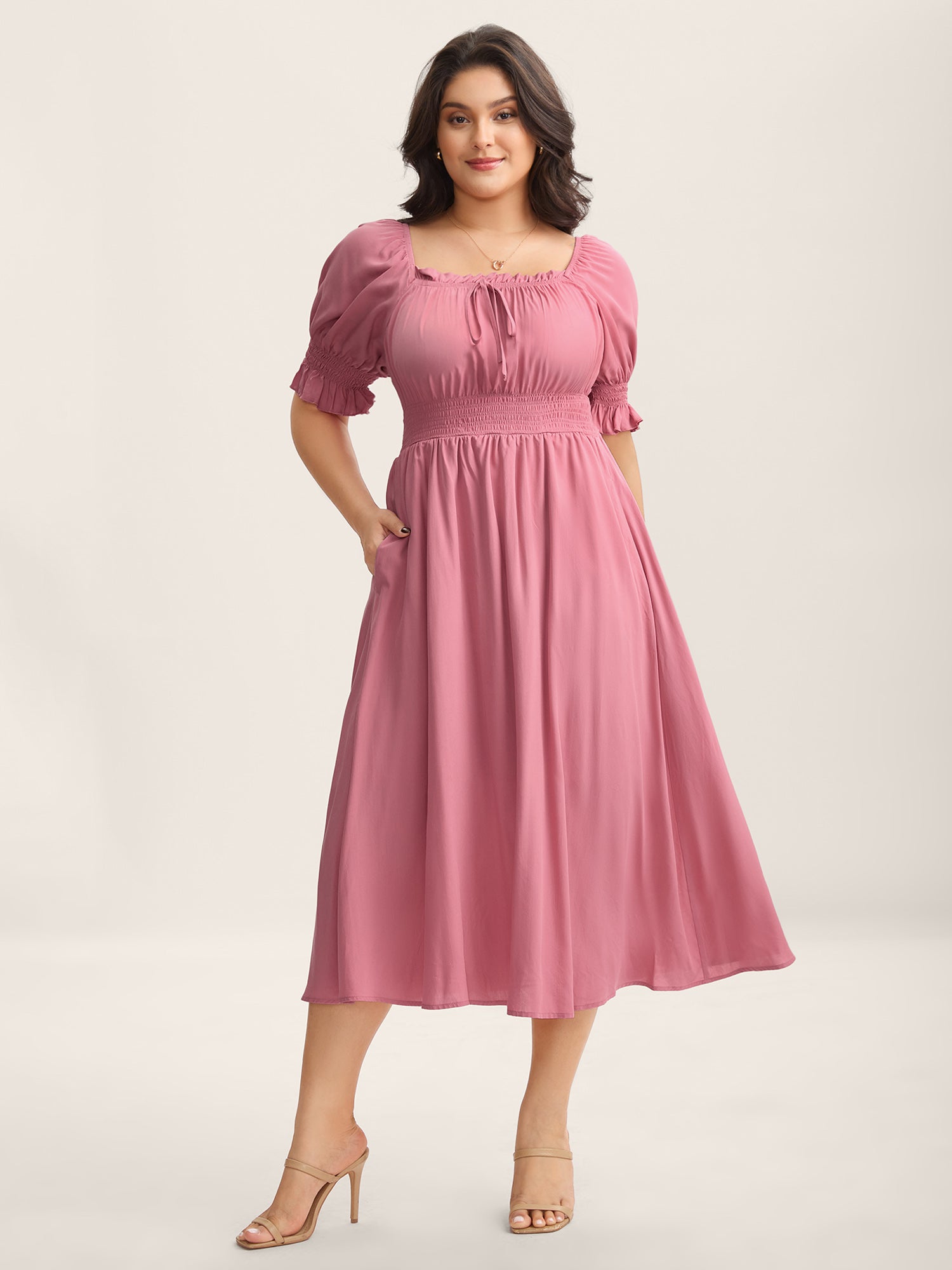 Rayon Stretchy Waist Pockets Milkmaid Dress