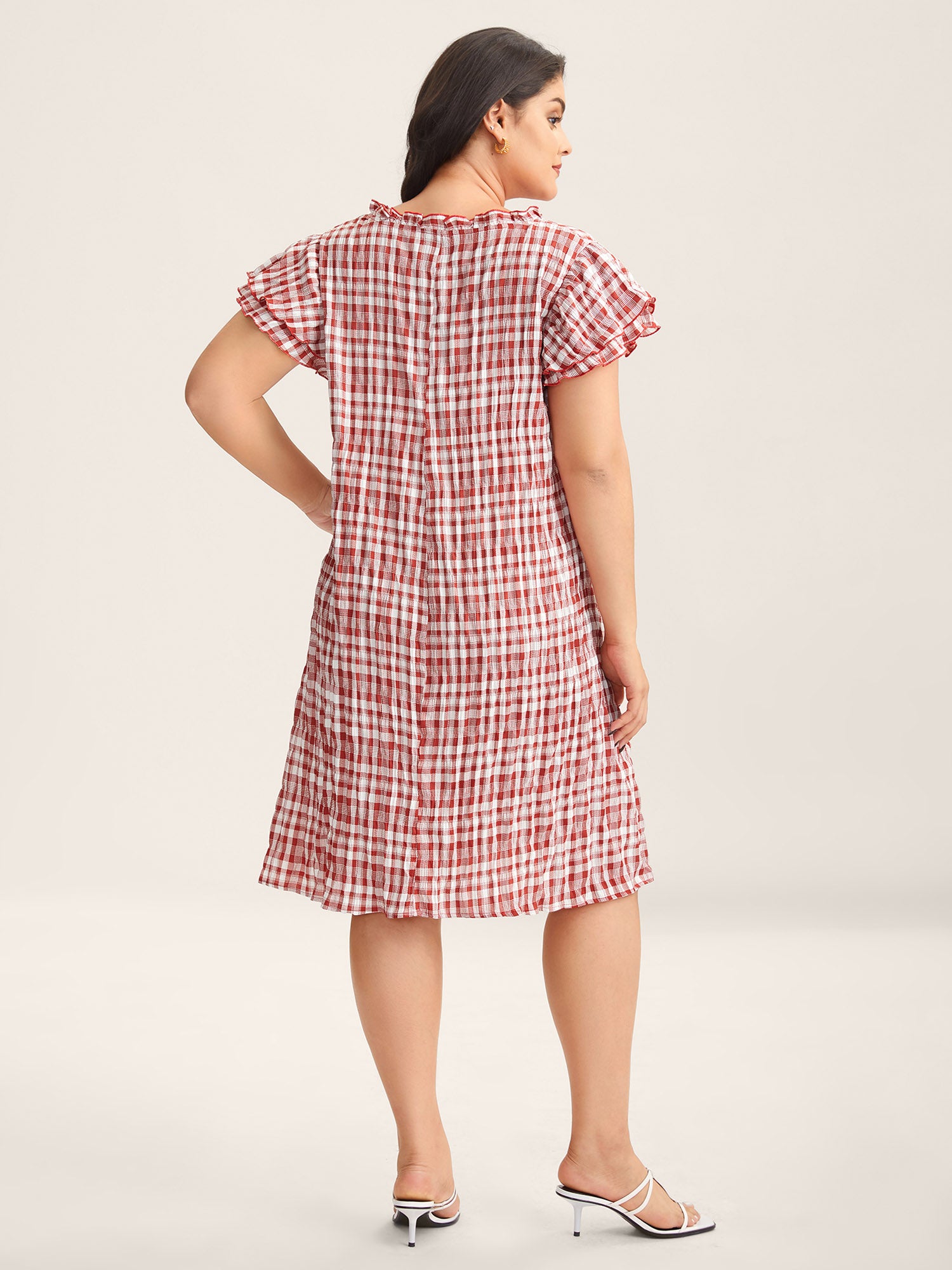 Sweet Plaid Pattern Pockets Midi Dress