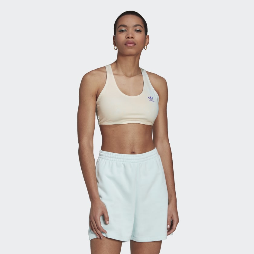 You've got places to go and pastels to wear. Taking a fresh approach to traditional tie-dye, this festival-inspired adithtdas bra top remixes soft, speckled hues into an eye-pleasing allover print. The racerback design offers comfort and support, and Trefoil style gives you that dash of something sporty. Made with a series of recycled materials, and at least 60% recycled content, this product represents just one of our solutions to help end plastic waste.